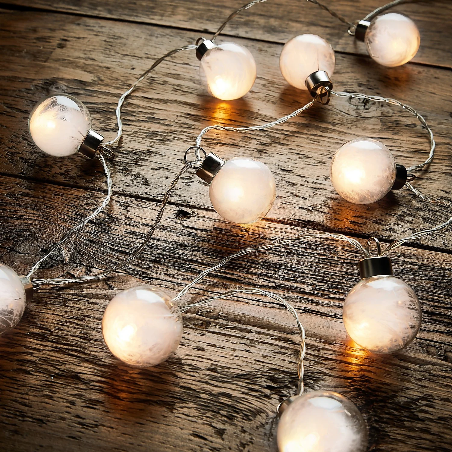 Create a dreamy look this Christmas time with our battery operated feather and glass ball string lights.