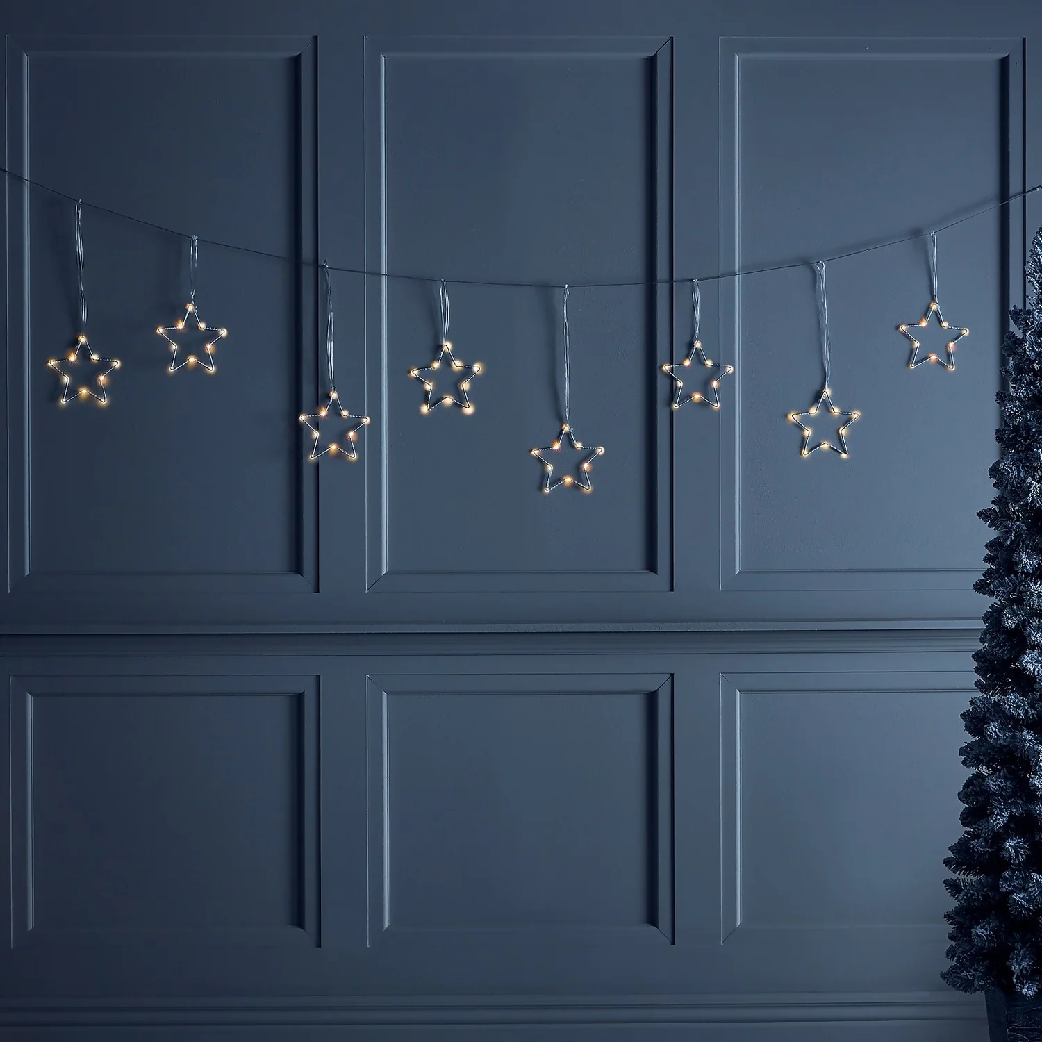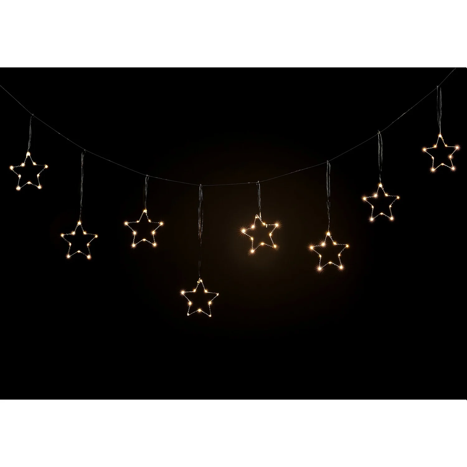 Add a touch of starlight to your Christmas decorations this year. These warm white LED pin wire star string lights will add a sparkling touch to your window.