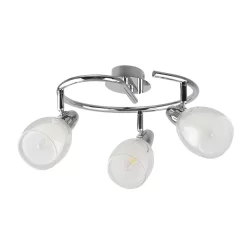 Eliza spotlight is a classic design in a chrome finish. The 3 fully adjustable, frosted glass lamps are mounted on a metal circular swirl in a chrome finish. The soften glow from this spotlight will brighten any room in your home