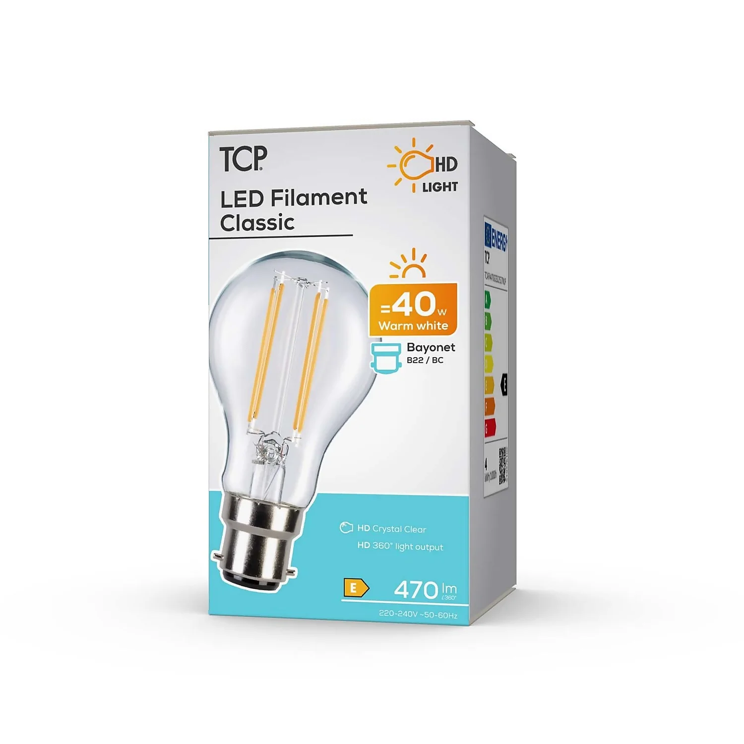 This bulb combines the improved lifespan and efficiency of LED bulb filaments, with the aesthetic of a warm light.