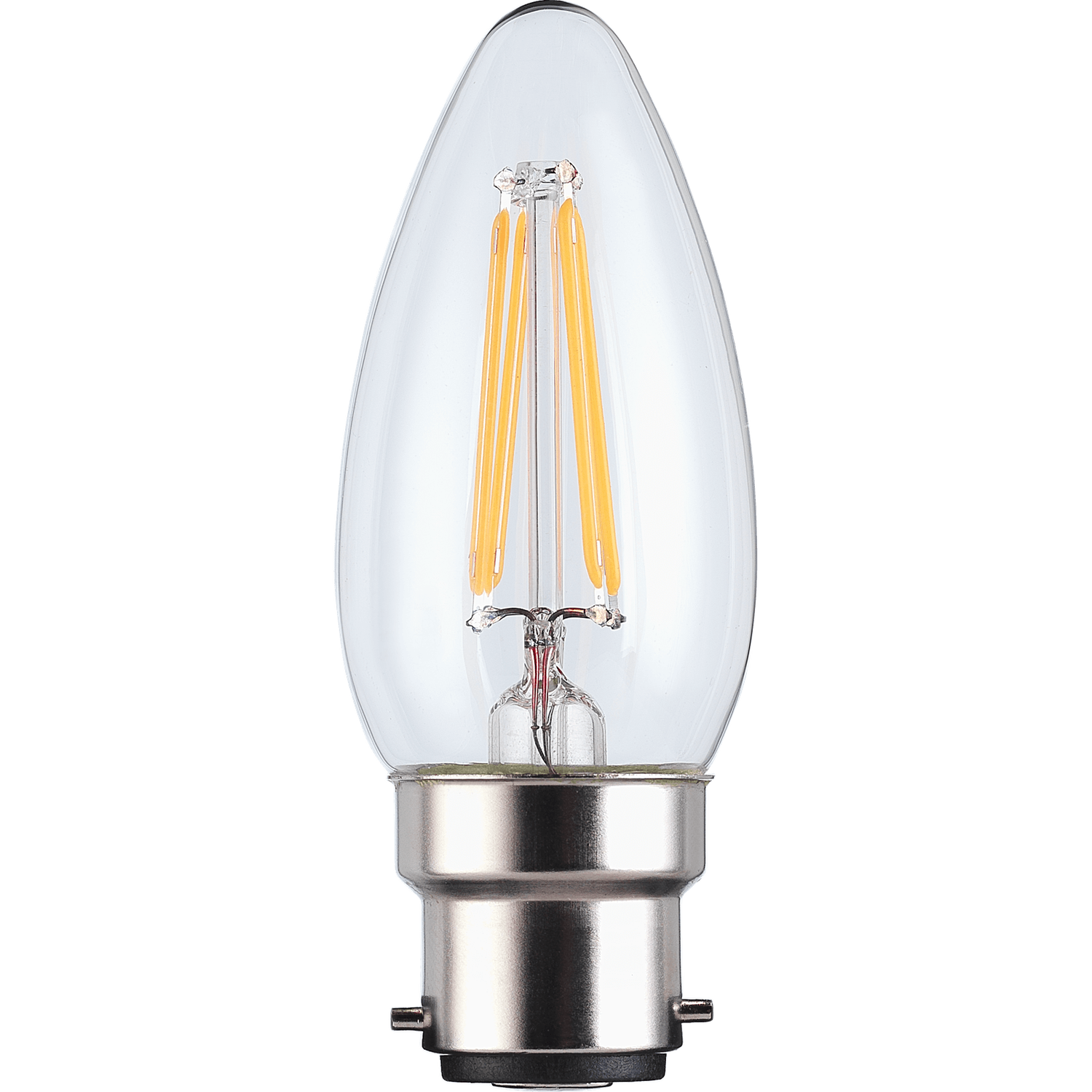 A single LED filament candle bulb with a bayonet cap fitting.