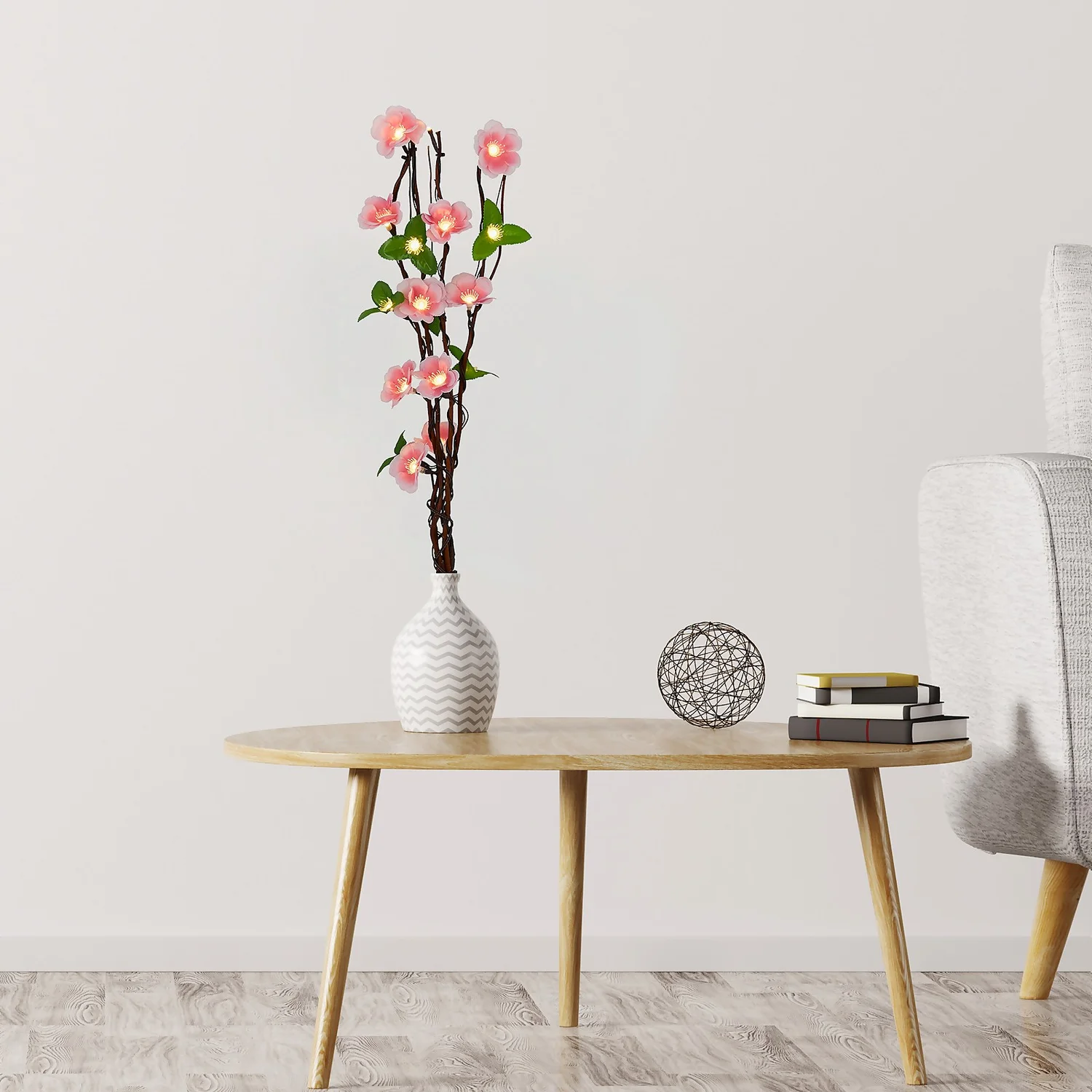 Small bulbs illuminate the centre of the pink cherry blossom flowers and leaves, creating a beautiful glow perfect for bedrooms and living rooms.