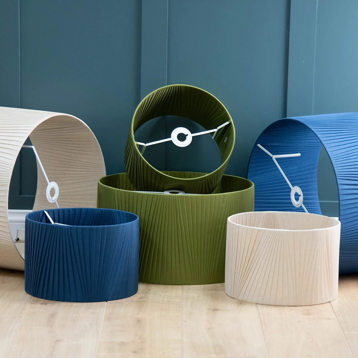 Give you room the WOW factor this statement lamp shade is crafted from faux silk, our Raye drum lampshade range will add a fun accent to your home. Made with a reversible gimbal to give you the choice as to where you can use this lamp shade either as a ceiling light or for a floor lamp. With its modern pleats and soft fabric this lamp shade will give the perfect glow to any room.